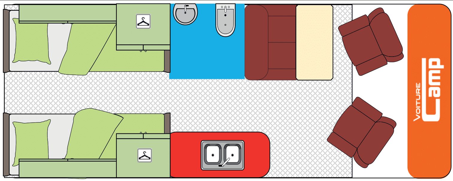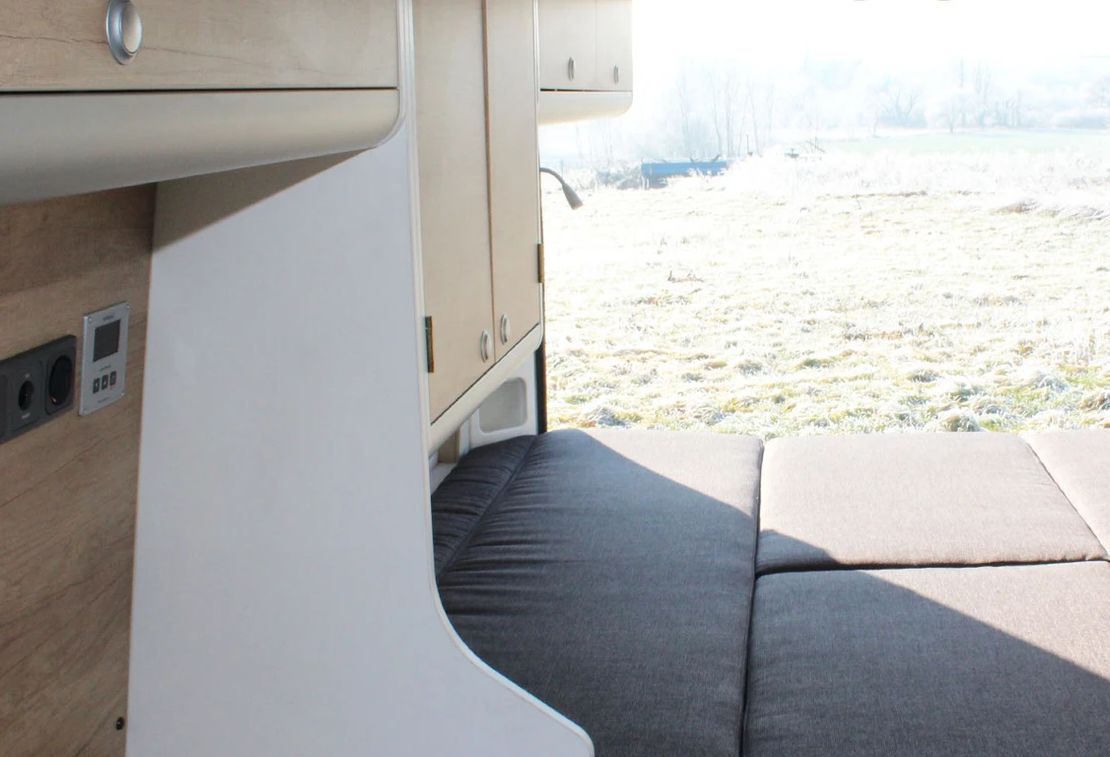 Das Abenteuer ruft, entdecken Sie unser mittleres Modell 19 M mit zwei Schlafmöglichkeiten, intelligenter Raumaufteilung und moderner Wohnraumgestaltung.